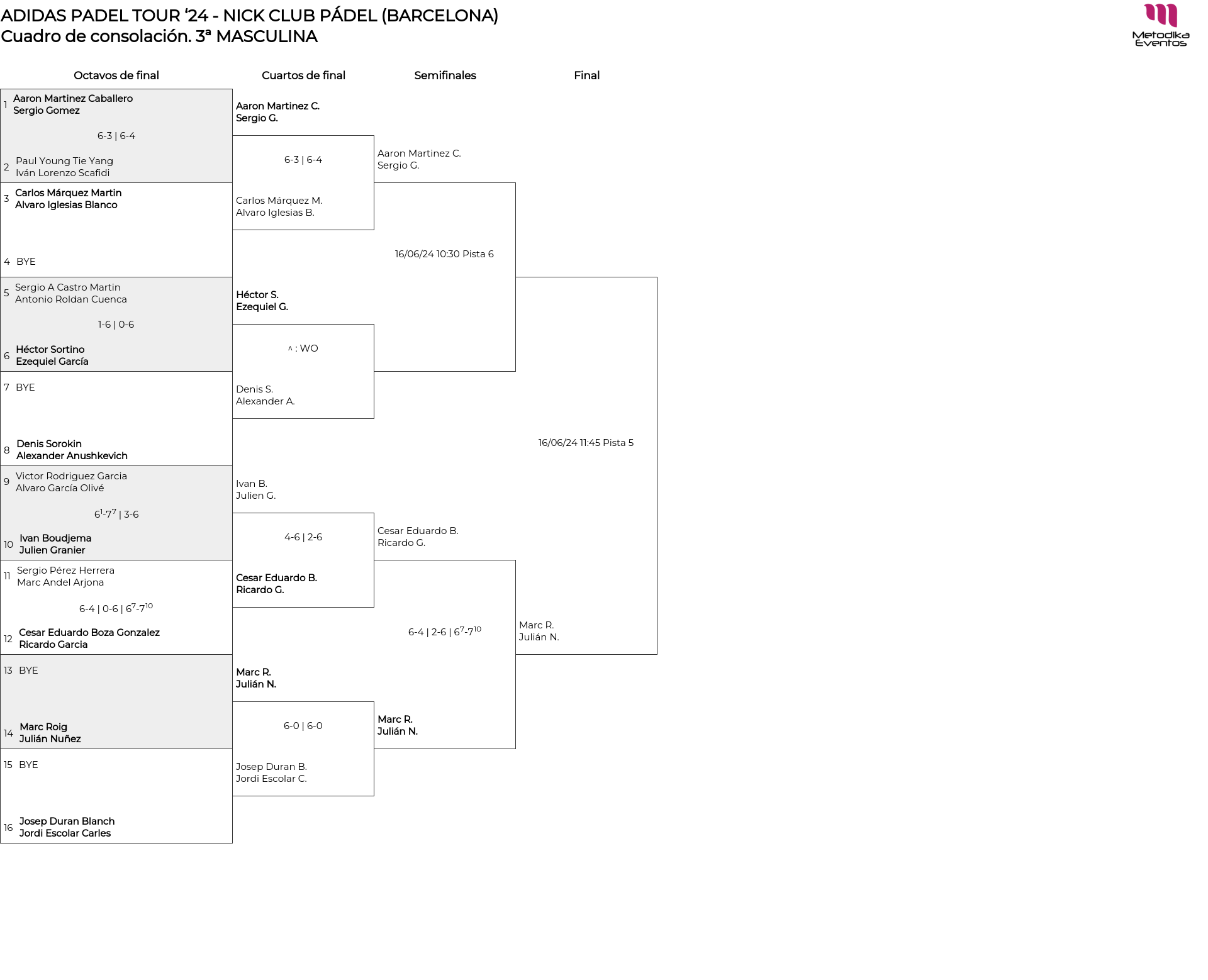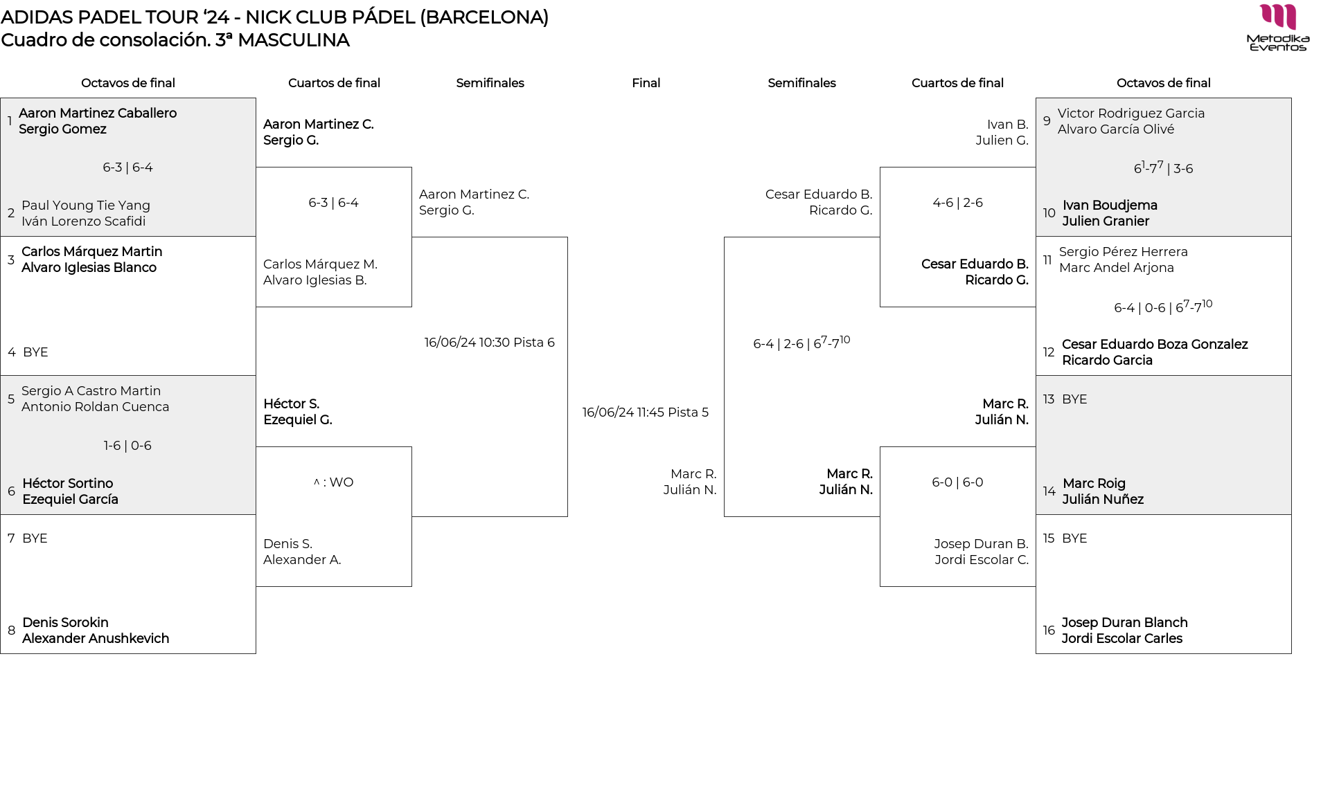 Cuadro de consolación 3ª MASCULINA