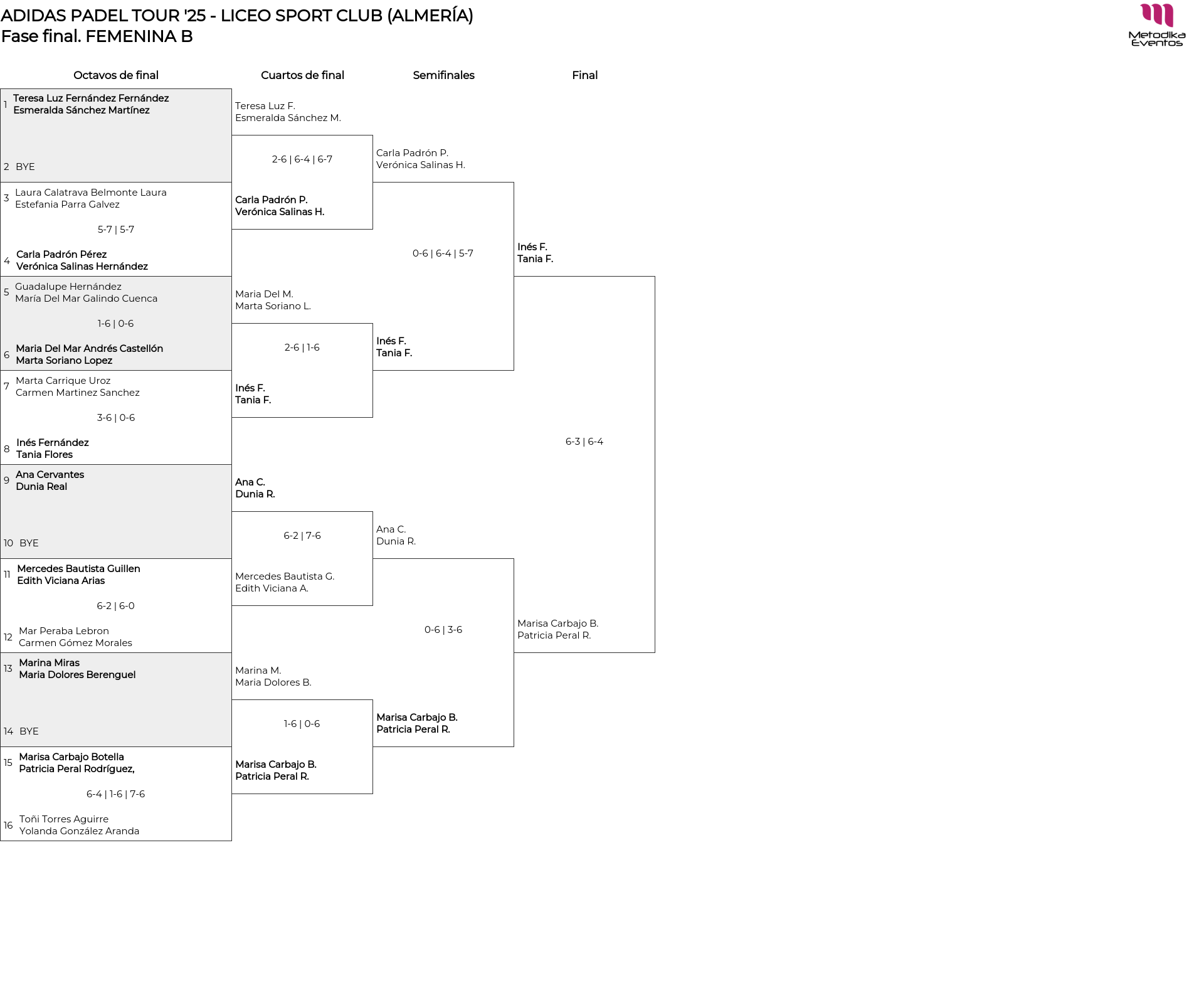 Cuadro principal FEMENINA B