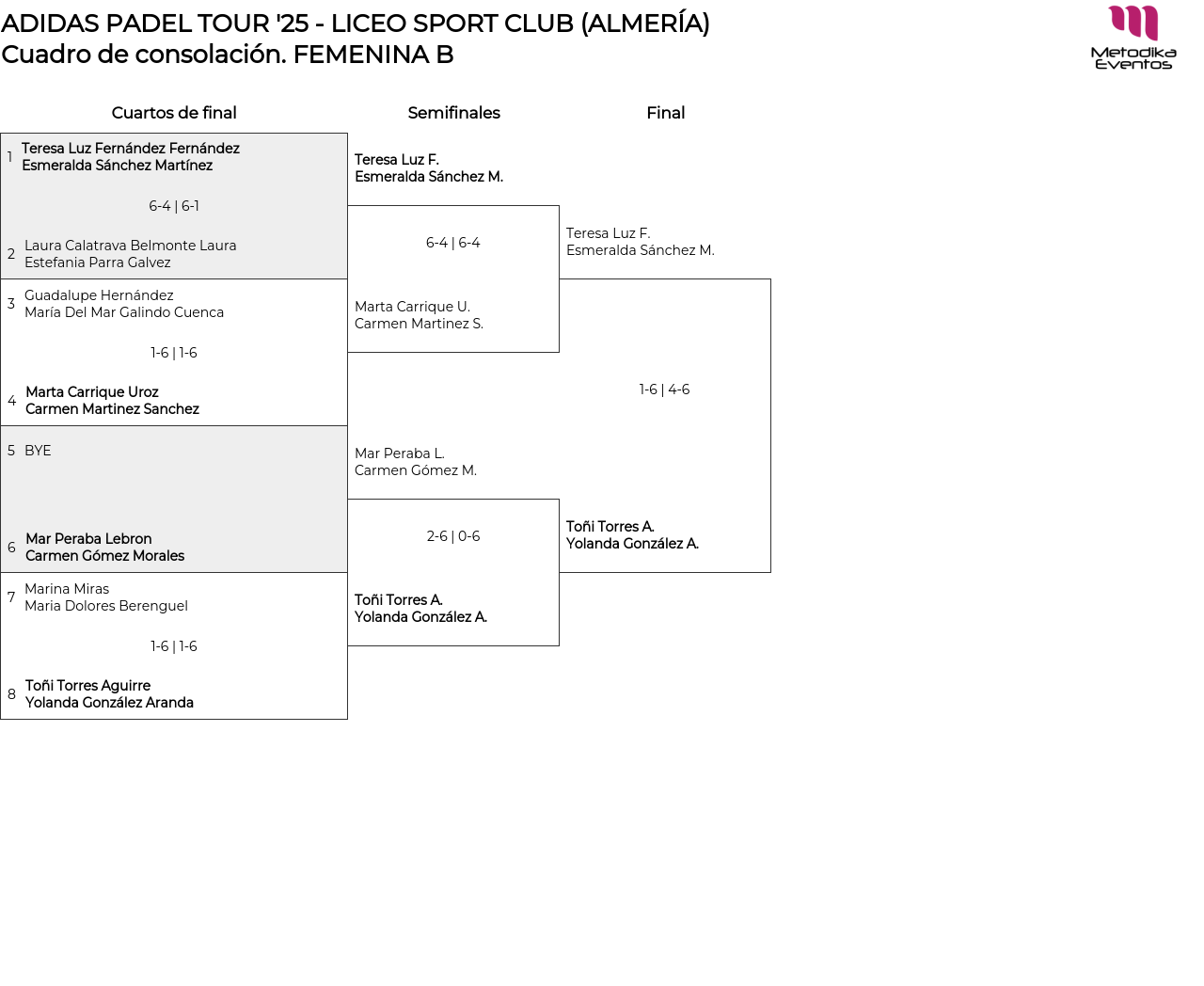 Cuadro de consolación FEMENINA B