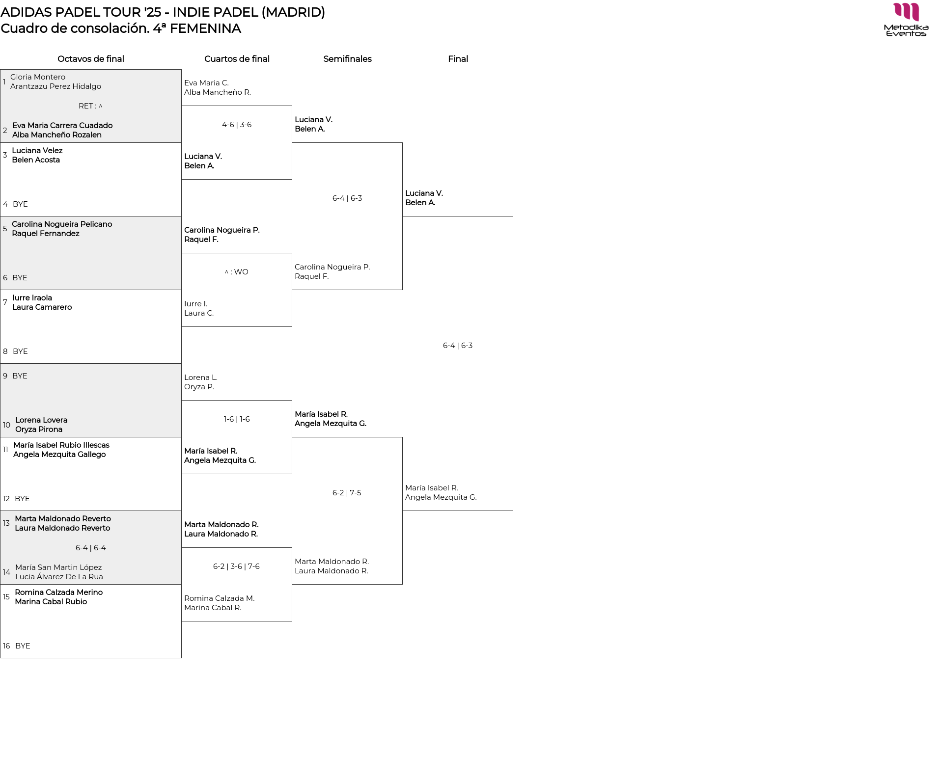 Cuadro de consolación 4ª FEMENINA