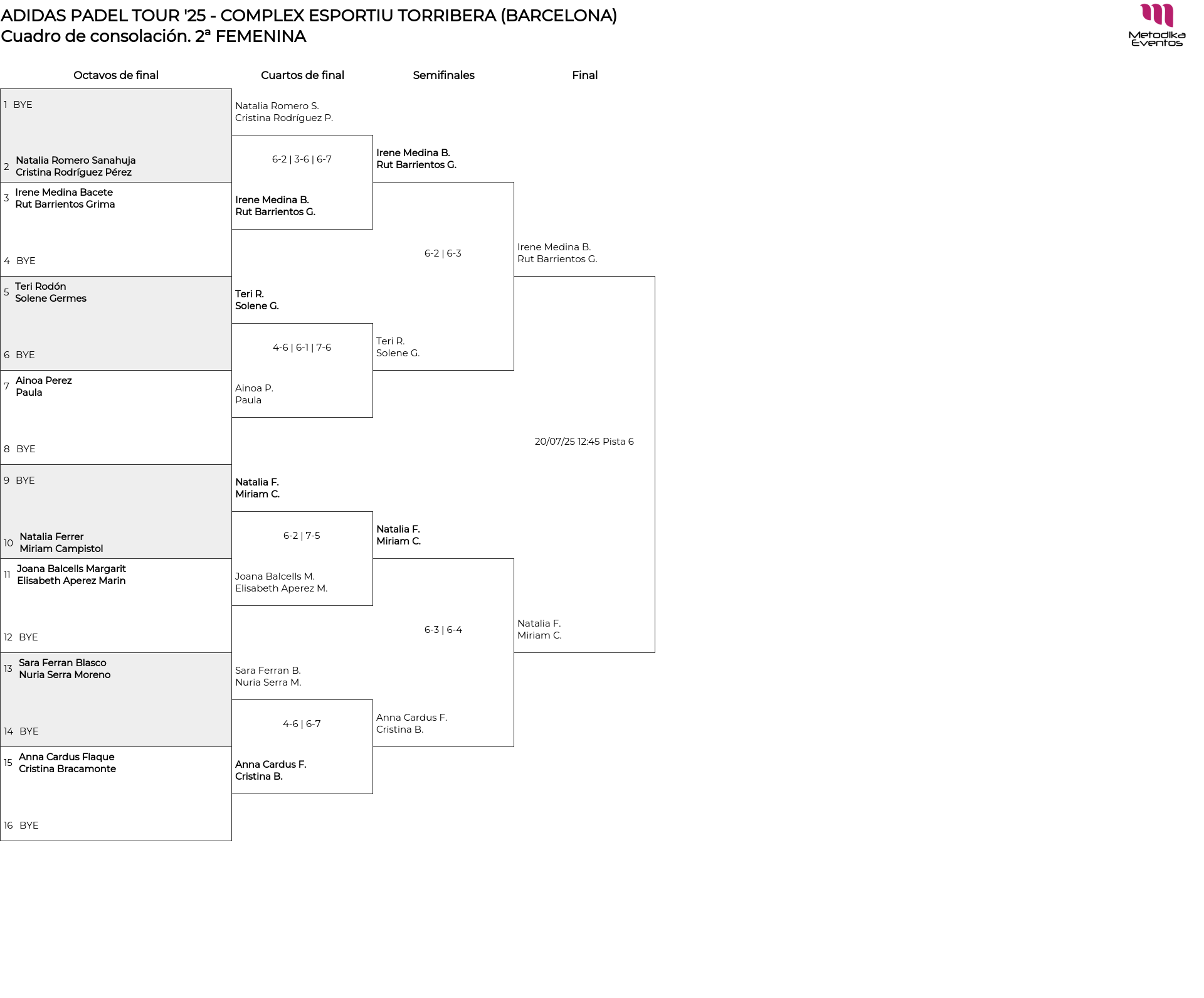 Cuadro de consolación 2ª FEMENINA