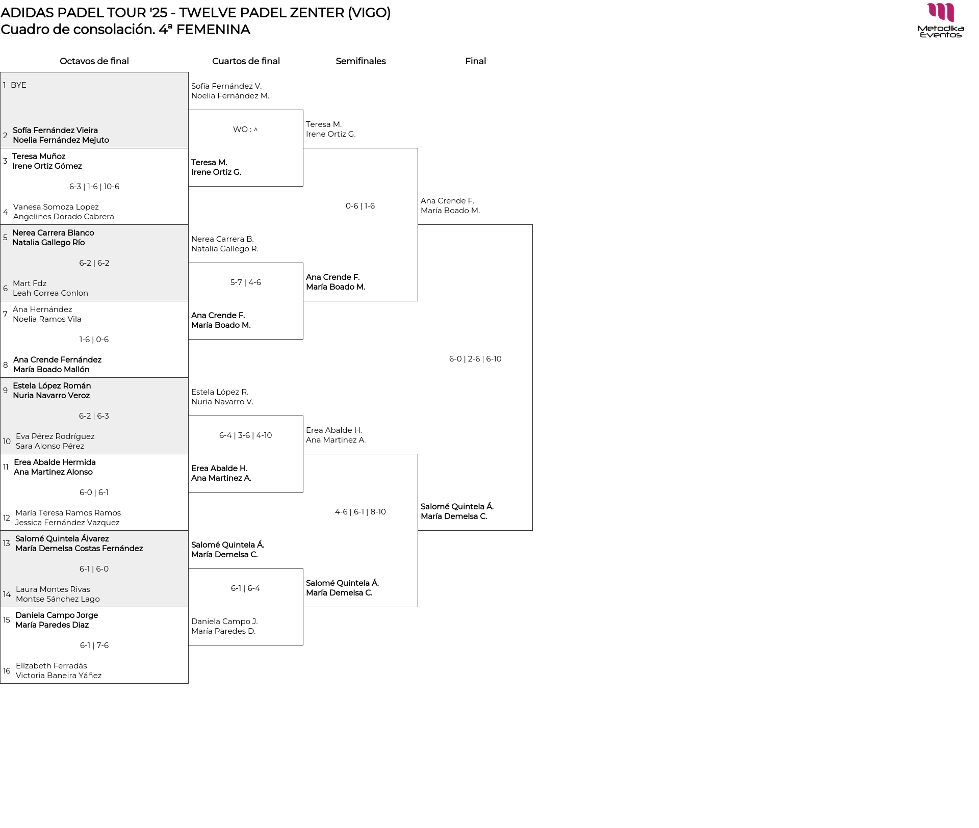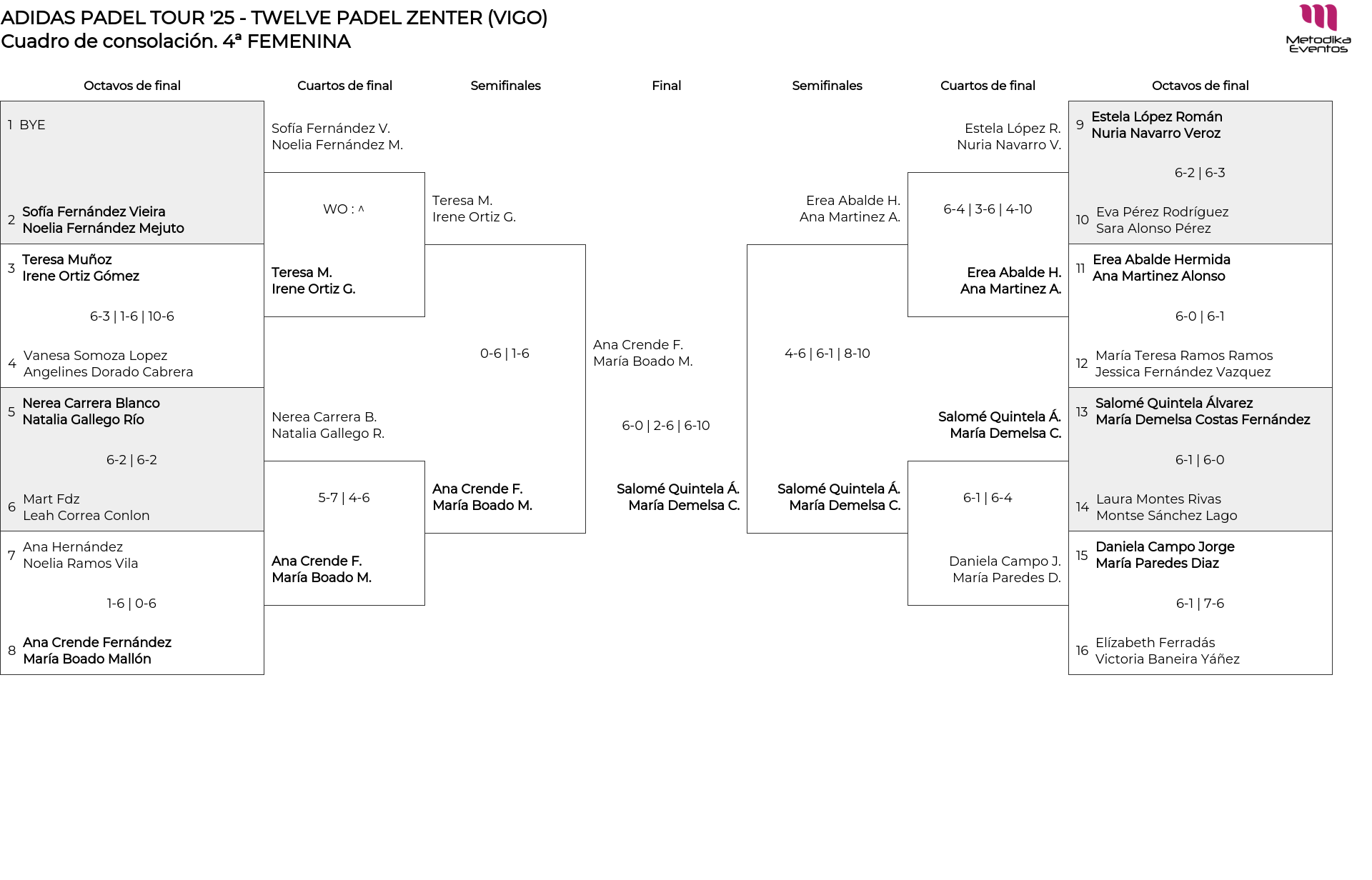 Cuadro de consolación 4ª FEMENINA
